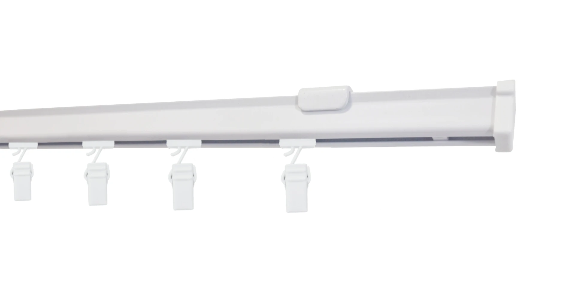 • Бяла алуминиева релса (корнизи за пердета до 250см дължина се доставят цели, а над 250см на две равни части)