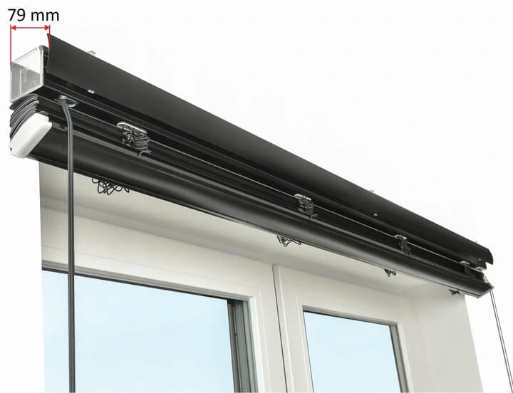 Отражението на горния механизъм от рамката на прозореца е 79 мм (виж графиката по-долу).