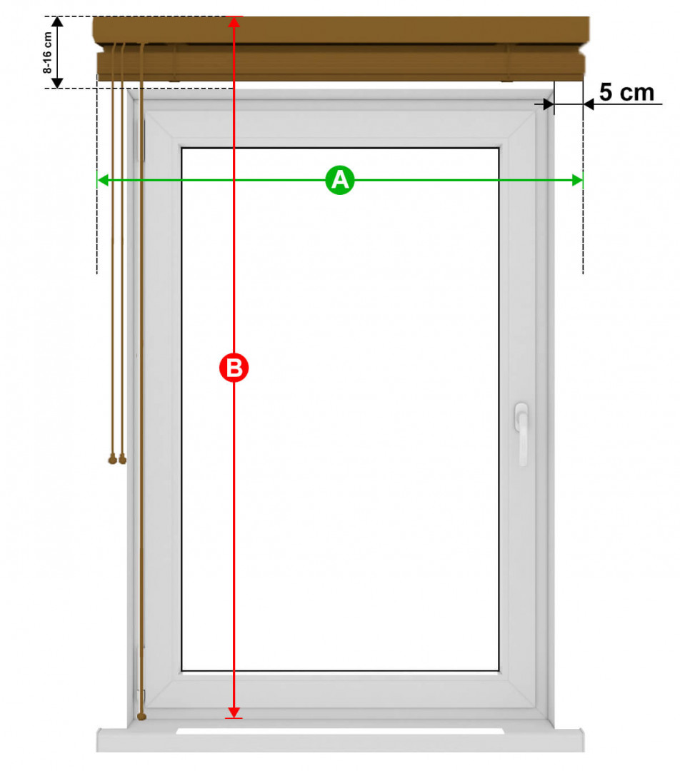 Методът на измерване е много прост. Въвеждате обща ширина и обща височина на щорите (включително горния механизъм и товарната греда). По-долу има някои предложения: