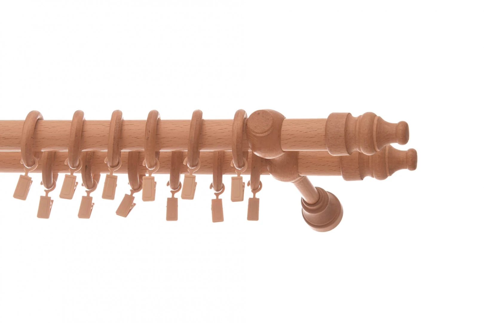 - Дървен прът с диаметър 28 мм - Корнизите до 250 см се доставят цели, а над 250 см на две равни части (напр. 400 см корниз е 2 пръта с дължина 200 см)