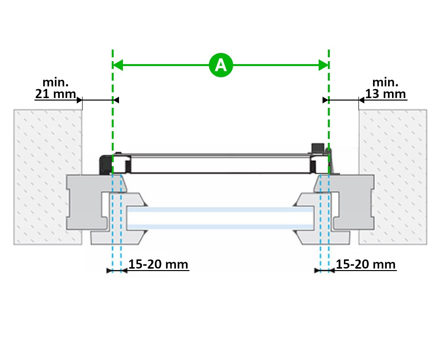 Не забравяйте да оставите място между мрежата против комари и стената за монтиране на панти (минимум 21 мм) и магнити (минимум 13 мм) върху рамката на вратата.