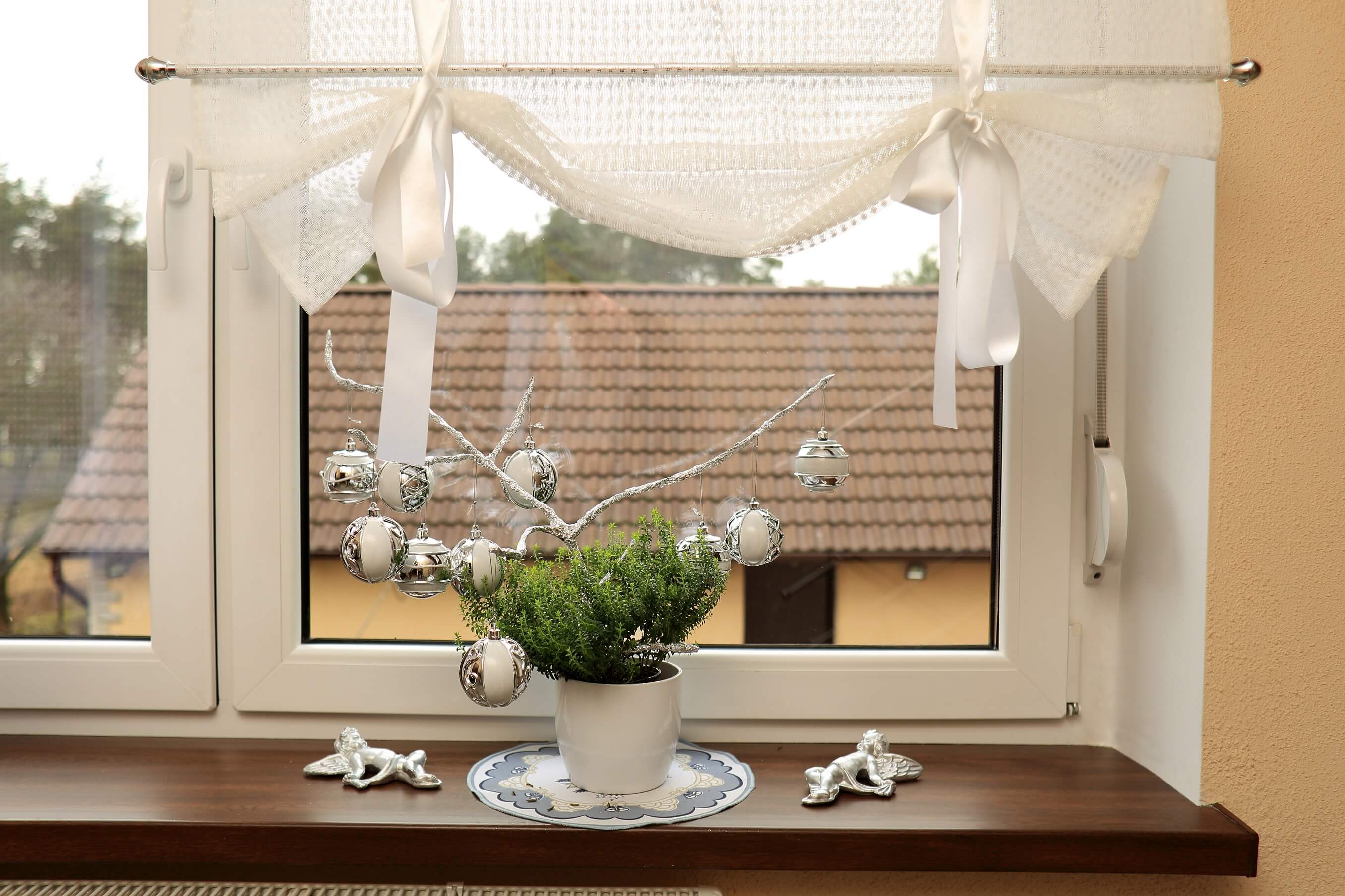 Завийте корниза към прозореца с помощта на специални скоби и винтове (включени).