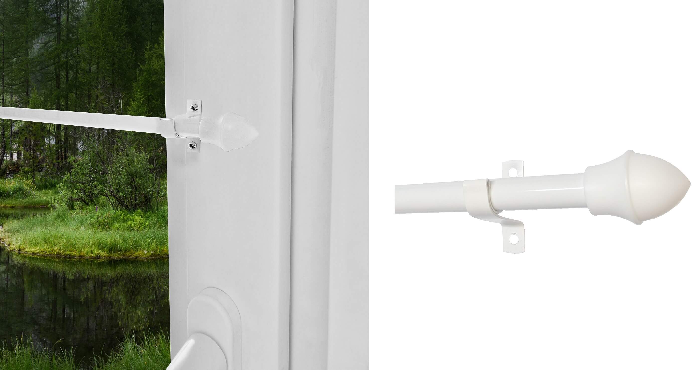 Корнизът се монтира на прозореца (без пробиване) с помощта на специални, залепени скоби.