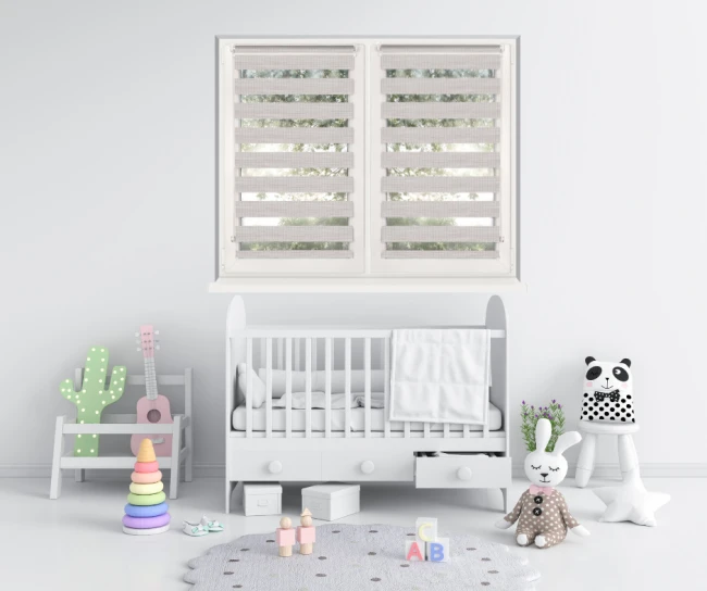 Странична секция на мини/мини ролетна щора с линия и материали ден-нощ.
