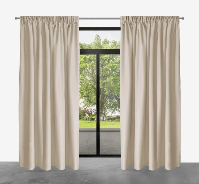 • Завесата има пришита набрана лента, която позволява да бъде окаченана щипки или кукички