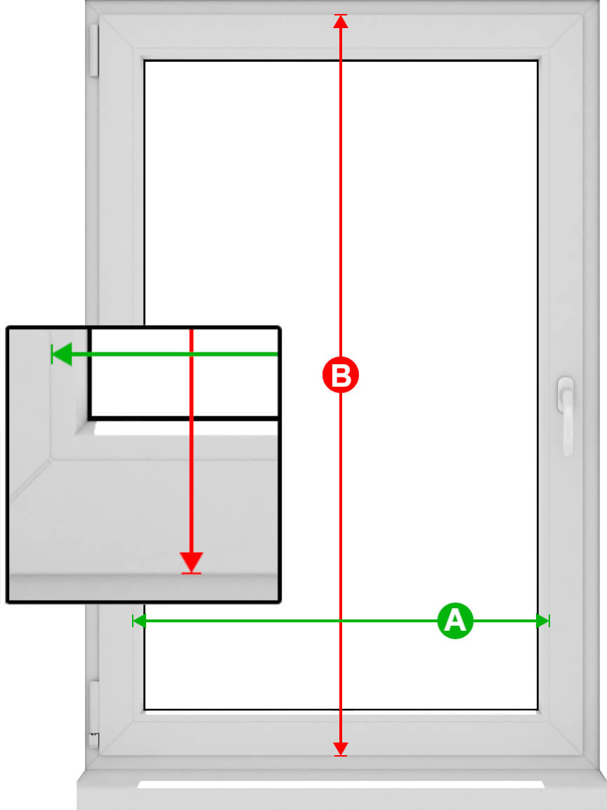 Височината на плисето "B" е общата височина на крилото на прозореца.