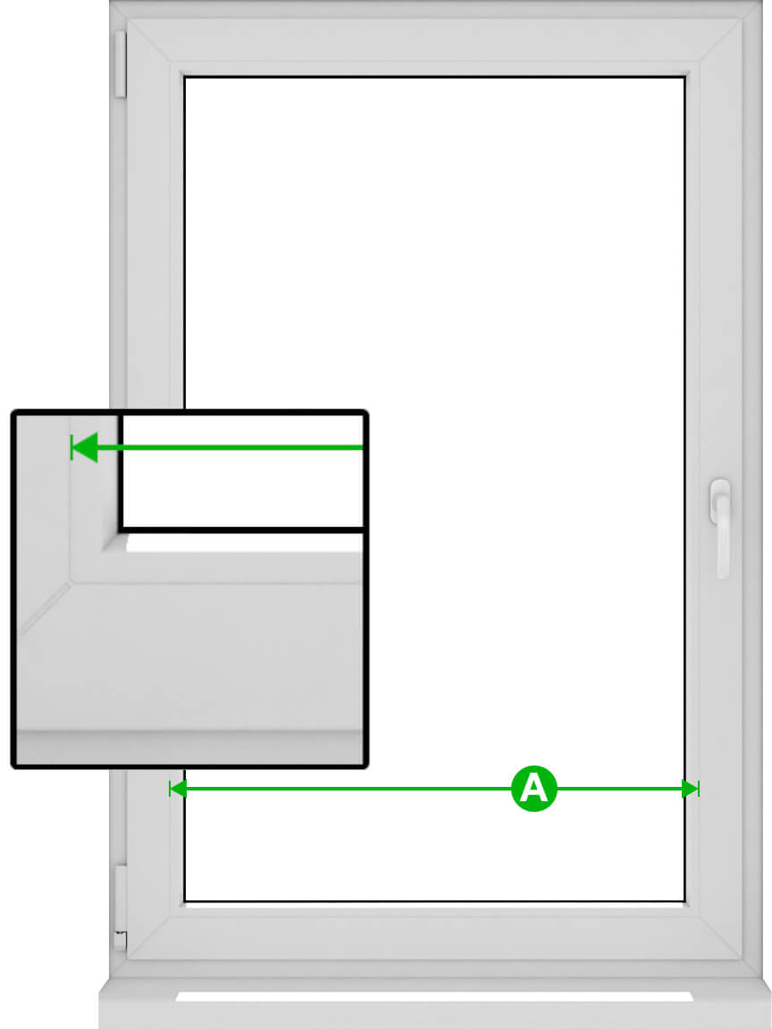 Ширината на плисета "A" е ширината на стъклото, включително перлите за остъкляване.