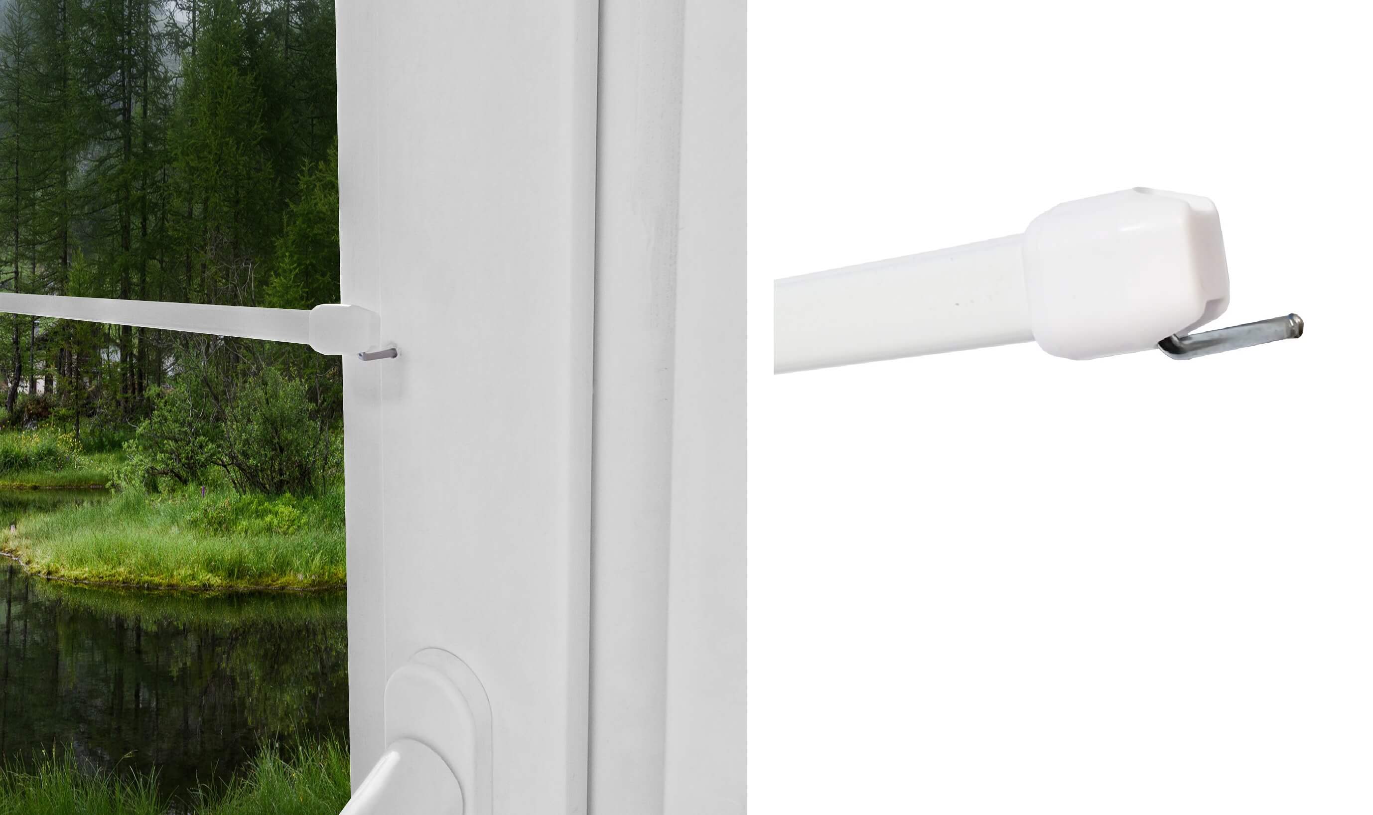 Заздростката се монтира на прозореца (без пробиване) с помощта на специални, залепени държачи .