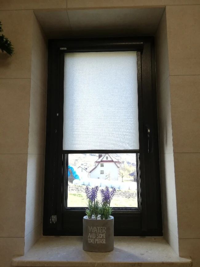 • Ролетна щора в касета с плоски водачи - при покупка от нашия магазин получаватесгъната и готоваза окачване на ролетни щори