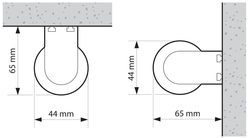 • монтаж към стена или таван с помощта на метални крепежни елементи щипки и алуминиев опорен профил, които осигуряват допълнителна армировка на ролетната щора (допълнителни подробности в раздел Елементи на ролетната щора)