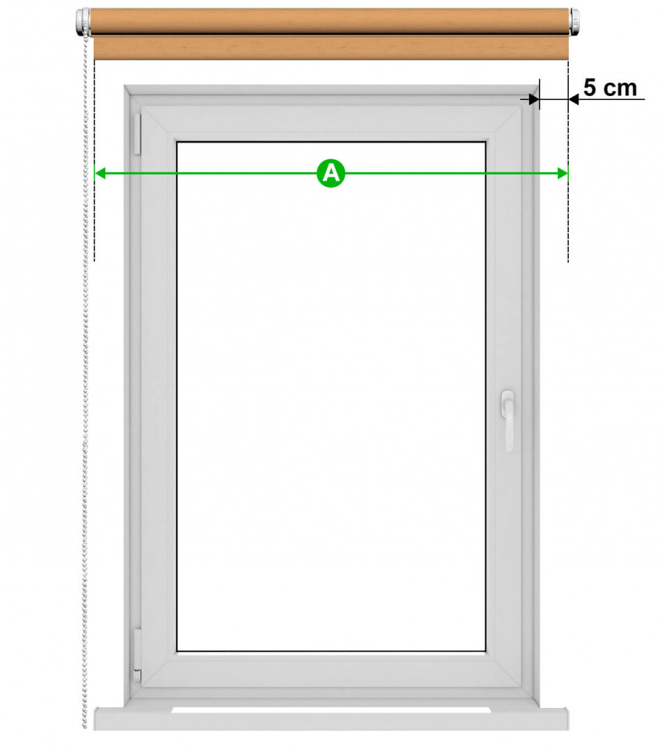 Вие определяте ширината на материала. Предлагаме да е по-широк от вдлъбнатина на прозореца (дупка в стената) с 10 см (5 см от всяка страна). Ако искате щората да е по-широка или по-тясна от предложените 10 см, нищо не пречи - въпрос на индивидуални предпочитания (но не може да е по-малко от 2 см от всяка страна, за да не прониква светлина в помещението ).
