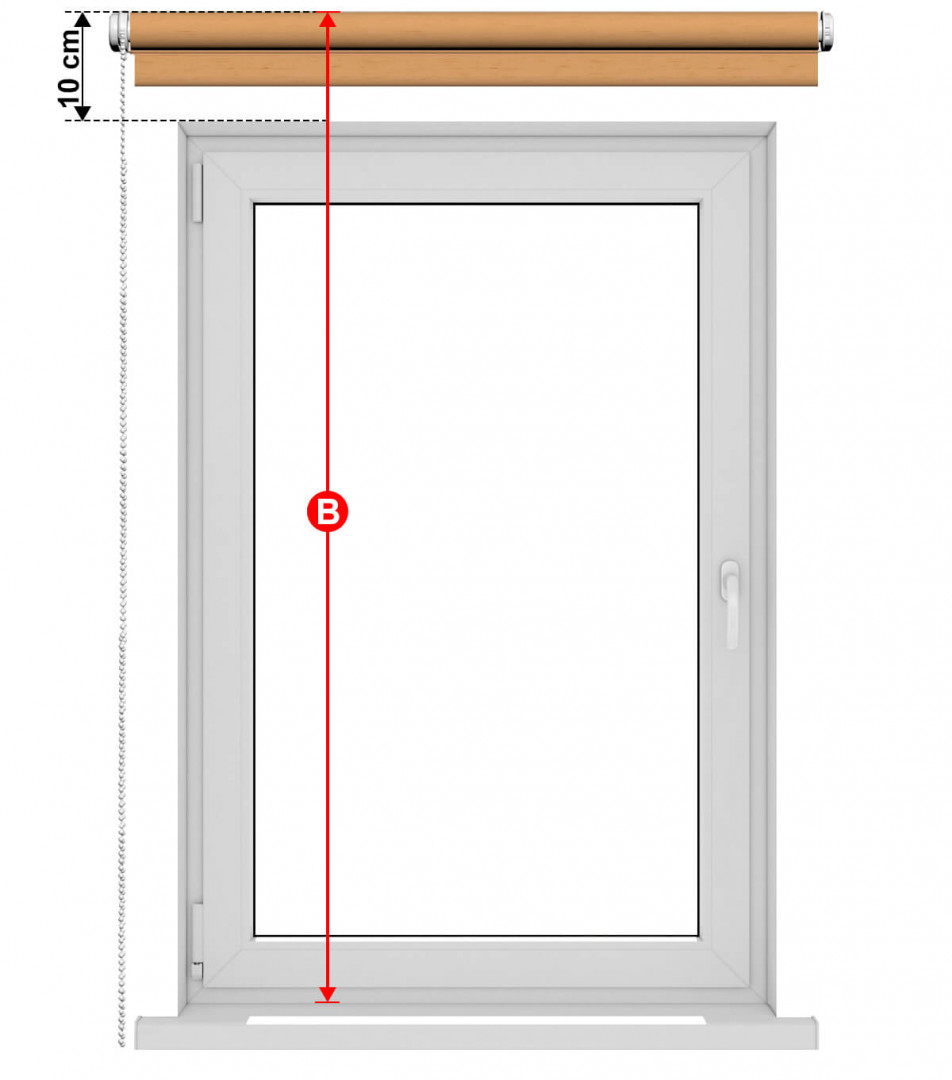 Измерете височината на нишата на прозореца и добавете 10 см (защото ролетната щора трябва да се монтира 10 см над нишата). Ако получената стойност не надвишава 170 cm, въведете височината "B", равна на 170 cm. Ако получената стойност надвишава 170 cm, въведете височината "B", равна на 240 cm.