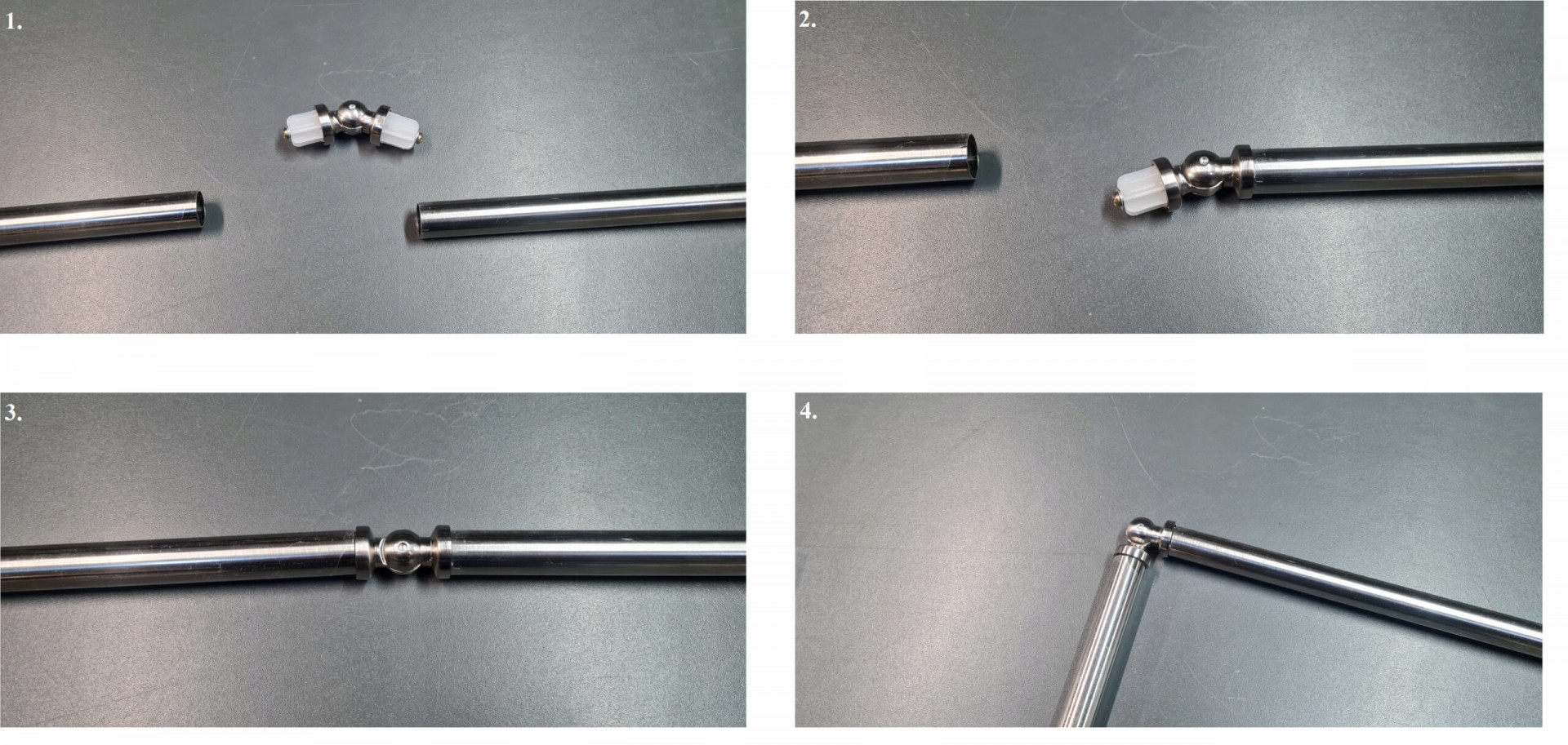 - Съединителят е монтиран вътрешно между двете тръби, което го прави невидим