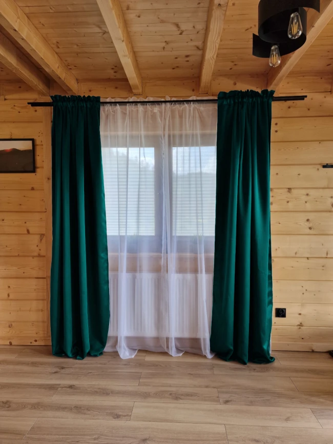 • Завесата има пришита набрана лента, така че може да се окачи на жабчета или кукички