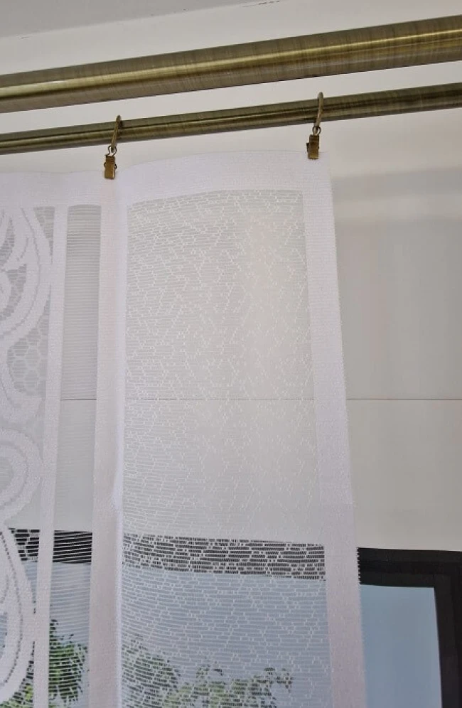 Жакардовото пано може да се окачи самостоятелно, комбинирано с други пана или като допълнение към завеси или щори, ще обогати стаите ни. Благодарение на своята универсалност, белите и черните цветове ще работят перфектно на много места, независимо от техния декор. Завесата еготова за монтаж, не изисква допълнителна адаптация.