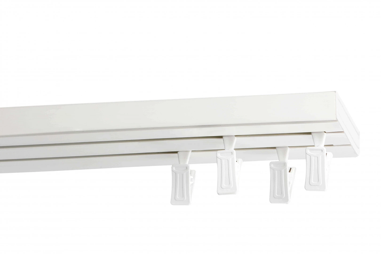 • Опростеност: класическият дизайн на релсата, доказан от хиляди клиенти, осигурява лекота на продукта, лесен монтаж и плавно плъзгане на завесите (ширината на релсата и разположението на релсите означава, че завесите не се припокриват и релсата е много стабилно монтирана)