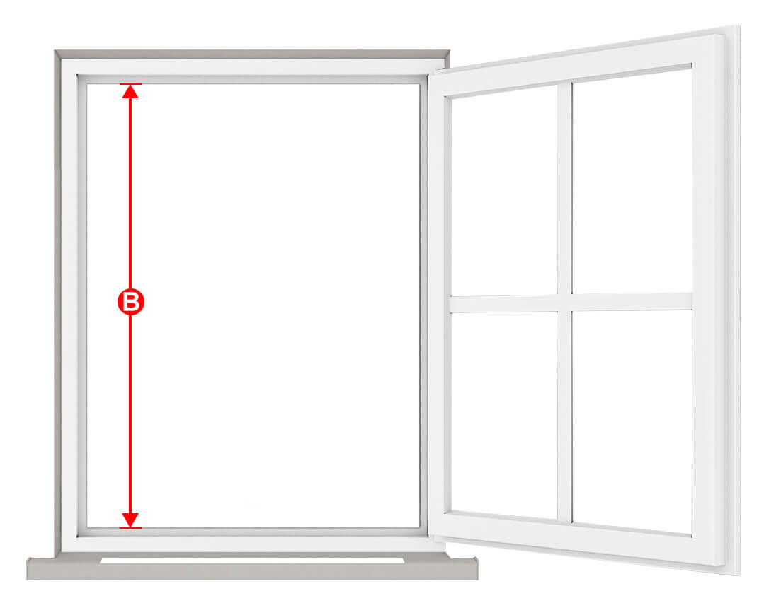 Измерваме ширината "A" и височината "B" на прозореца след отваряне (разстоянието между най-изпъкналите точки в рамката на прозореца).
