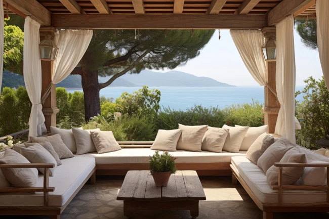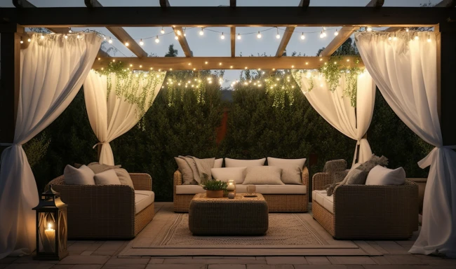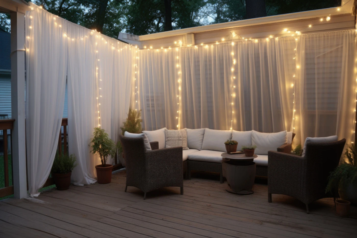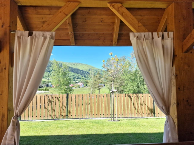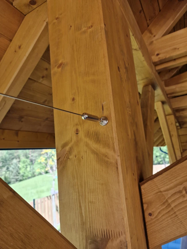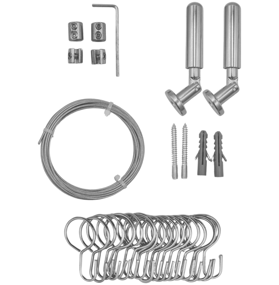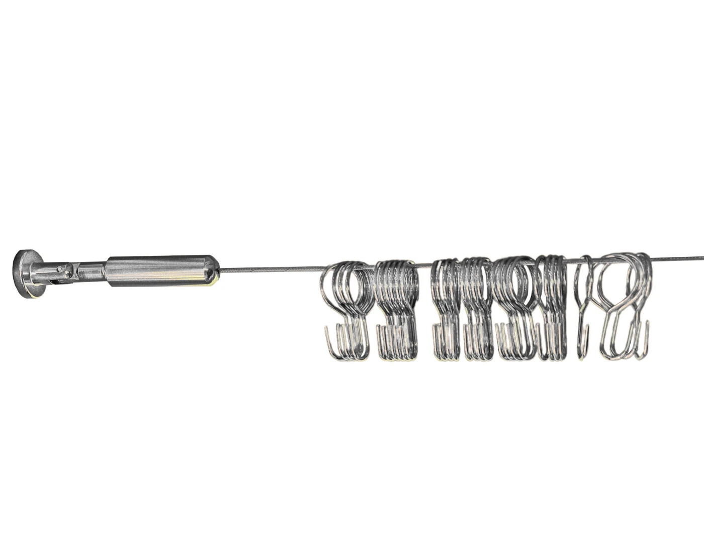 - Кабелният корниз е практично решение за монтаж на тераси, беседки и градини, което позволява лесно окачване на пердета, пердета и терасови гирлянди.