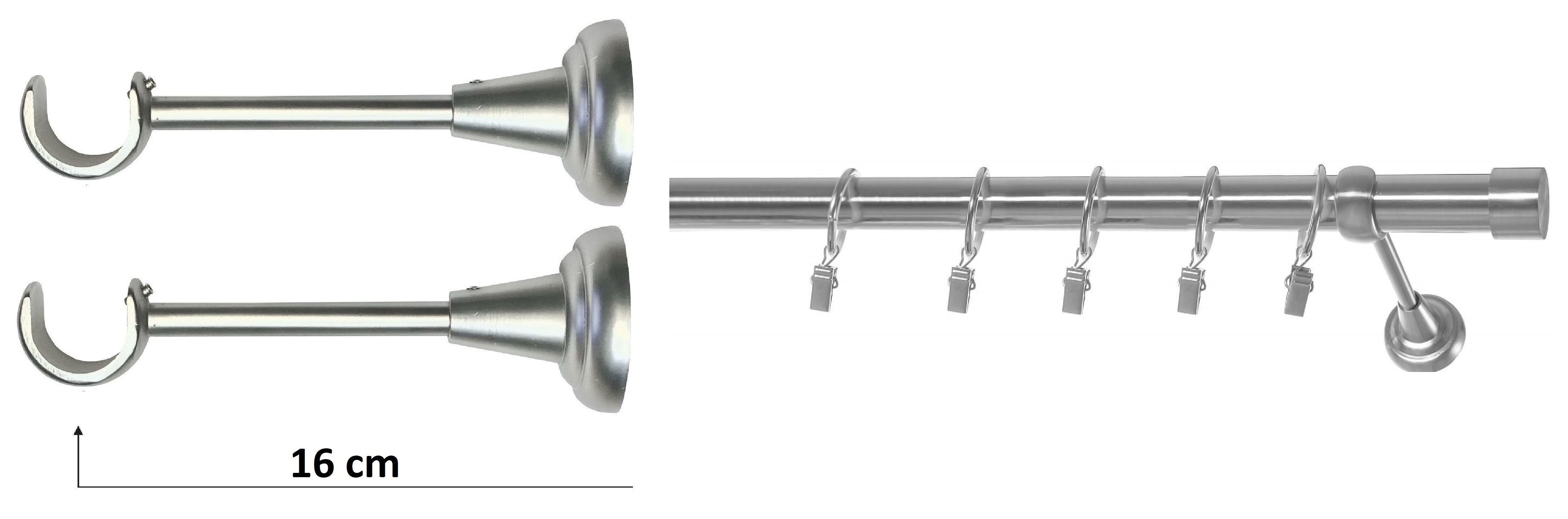 • Единични универсални скоби - Корнизът може да се монтира както на стена, така и на таван (броят на скобите в комплекта зависи от дължината на пердето прът: 2 скоби до 250 см, 3 скоби над 250 см см)