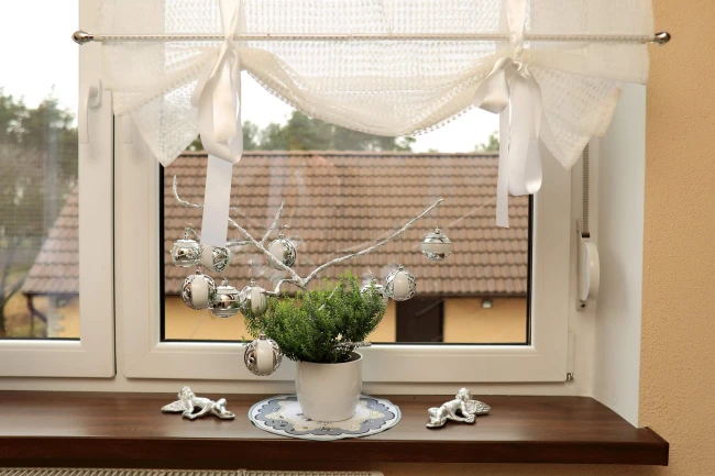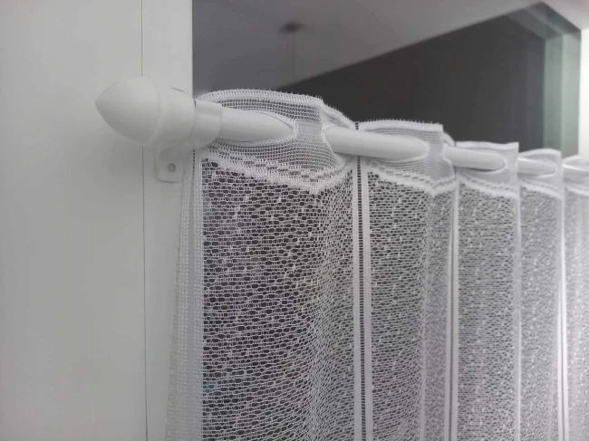Корнизът се монтира на прозореца (без пробиване) с помощта на специални, залепени скоби.