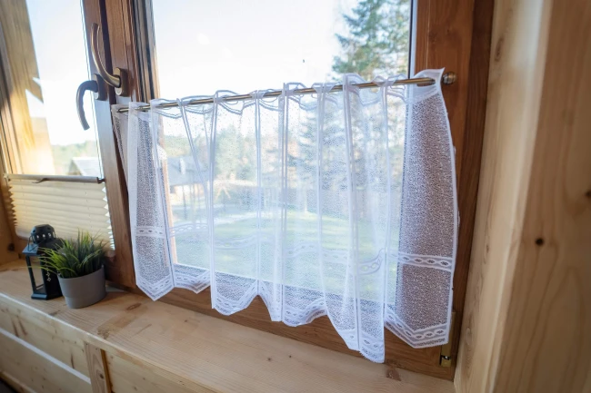 За да направите корицата толкова набръчкана, колкото на снимката, трябва да я купите два пъти по-широка от ширината, която искате да покриете. Например, ако искаме да покрием прозорец с ширина 50 см, трябва да купим капак с ширина 100 см.