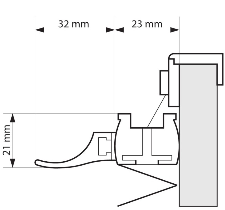 При този тип при монтаж, механизмът излиза на приблизително 2,5 см от прозореца, което означава, че радиусът на отваряне на прозореца ще бъде ограничен.
