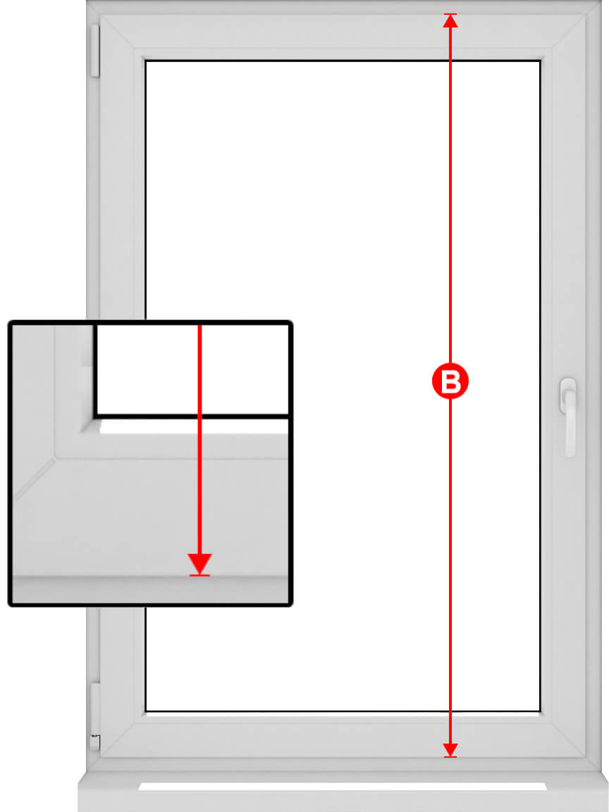 Височината на плисето "B" е общата височина на крилото на прозореца.