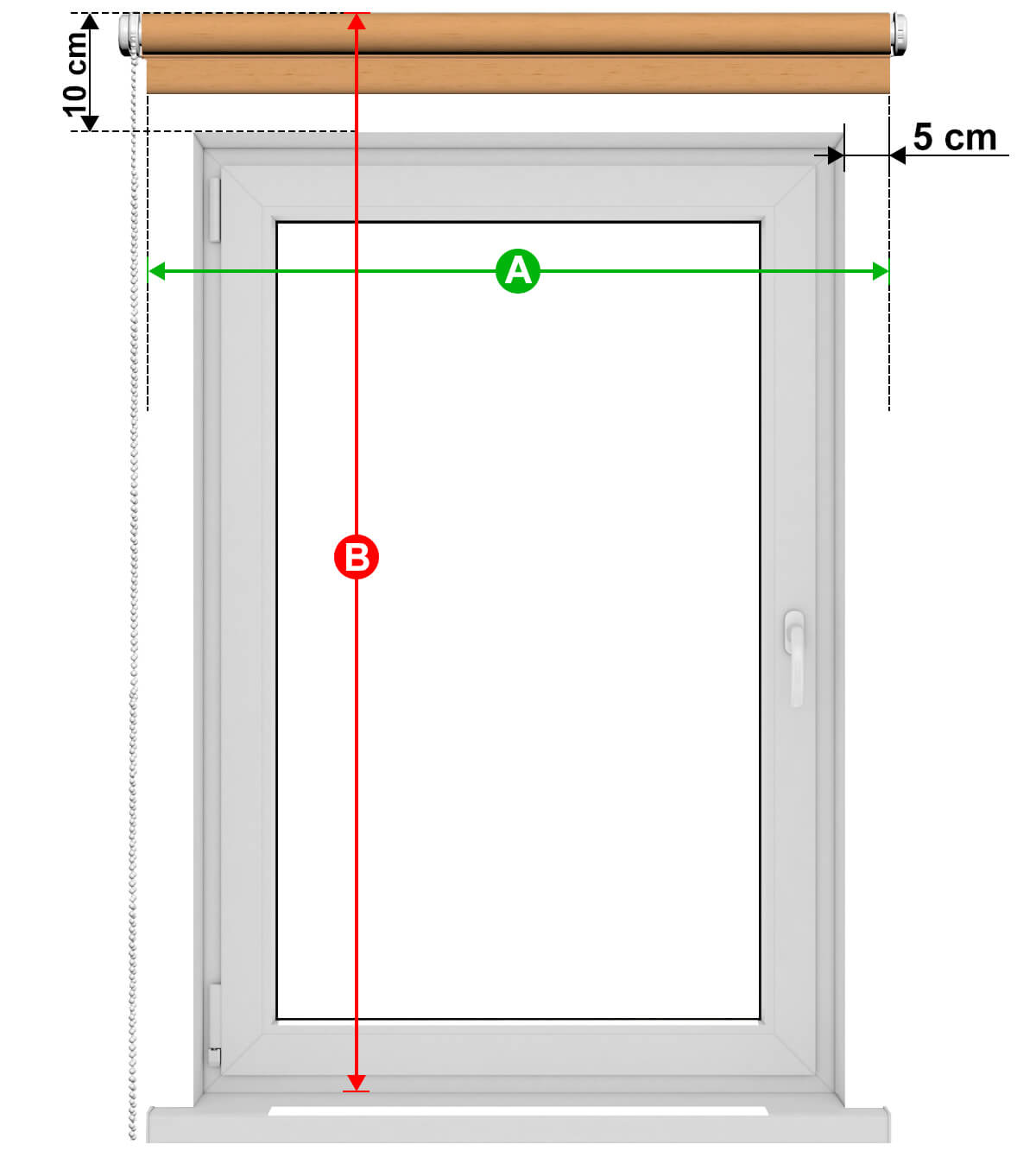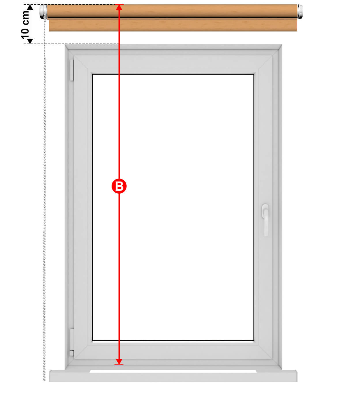 Измерете височината на нишата на прозореца и добавете 10 см (защото ролетната щора трябва да се монтира 10 см над нишата). Ако получената стойност не надвишава 170 cm, въведете височината "B", равна на 170 cm. Ако получената стойност надвишава 170 cm, въведете височината "B", равна на 240 cm.