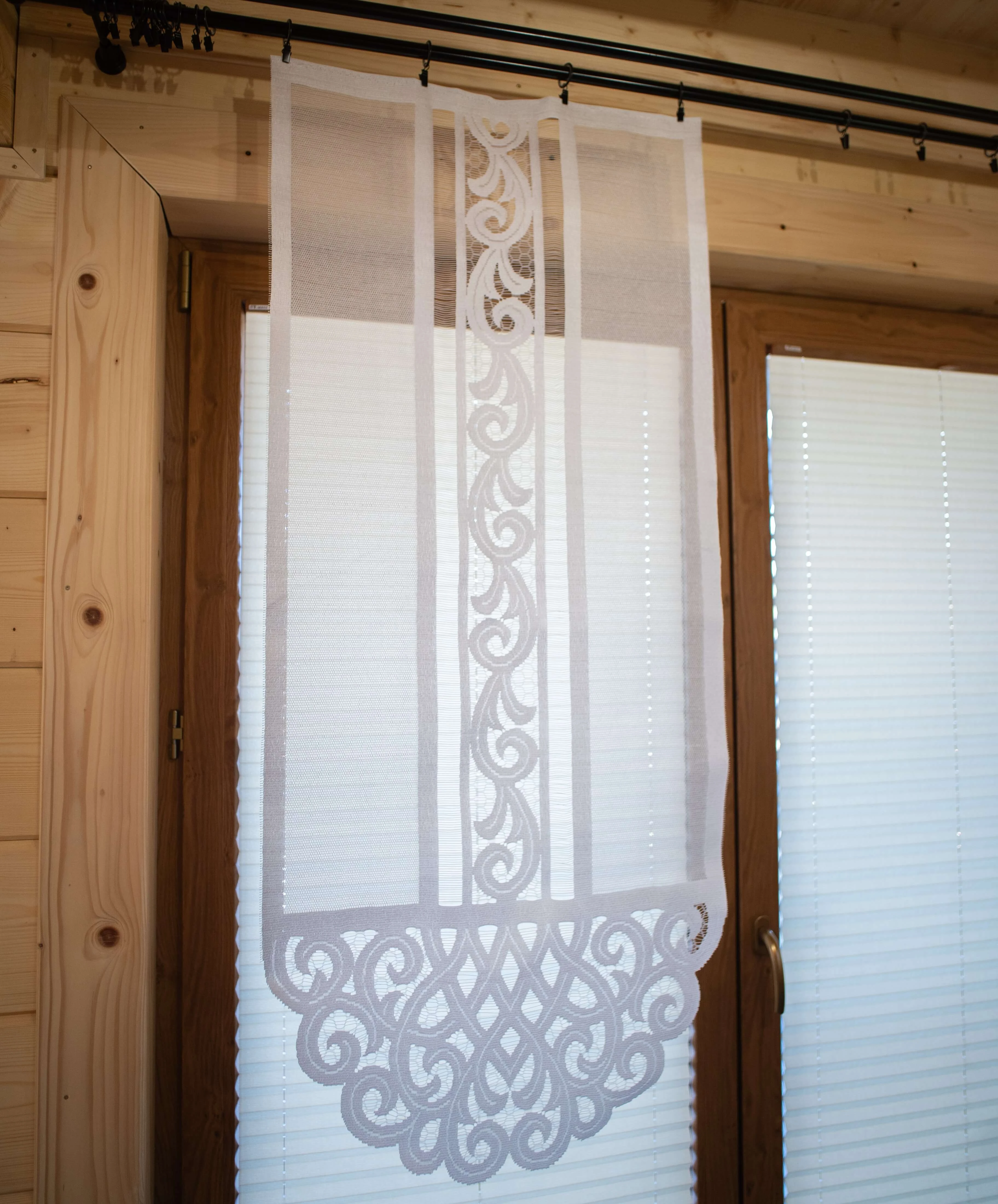 Жакардовото пано може да се окачи самостоятелно, комбинирано с други пана или като допълнение към завеси или щори, ще обогати стаите ни. Благодарение на своята универсалност, белите и черните цветове ще работят перфектно на много места, независимо от техния декор. Завесата еготова за монтаж, не изисква допълнителна адаптация.