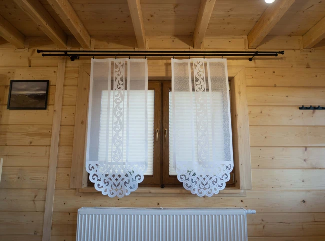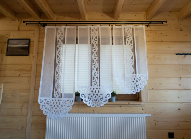 В момента жакардовите плоскости са много популярни, те се характеризират скрасив външен види перфектно пропуска светлина. Те не създават проблеми при пране и не изискват гладене (просто закачете влажната завеса на прозореца). Ажурна шарка и пано, изработено изцяло отнай-висококачествена твърда жакардова плетка.